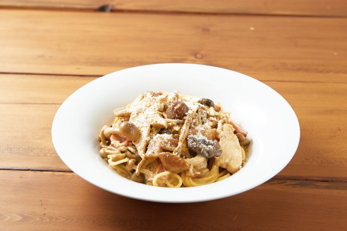 クリームベースのソースにもきのこの旨味がきいていて、きのこの歯ごたえが楽しい一品です。