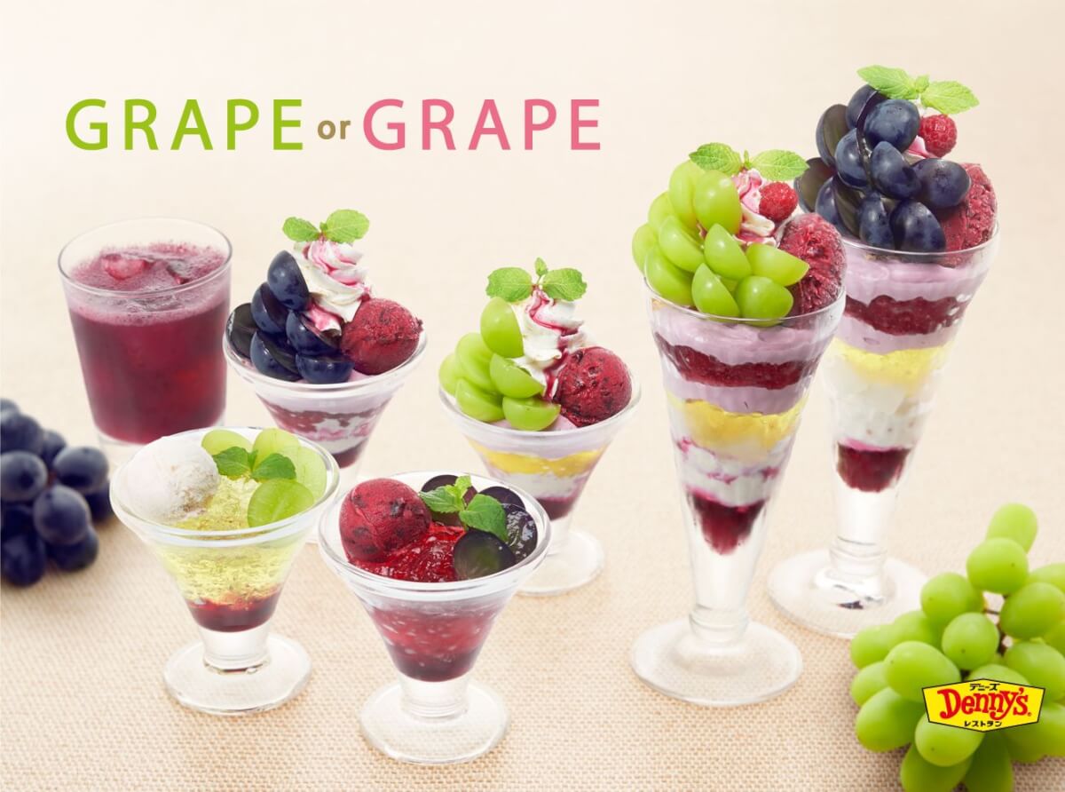 デニーズから、「シャインマスカット」と「巨峰」の2種類のぶどうを使ったデザートが登場!