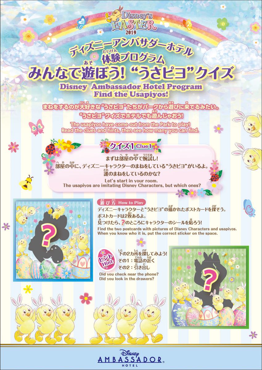 ディズニーアンバサダーホテルで開催されるのは東京ディズニーシー“ディズニー・イースター2019”の注目の新キャラクター“うさピヨ”クイズ。