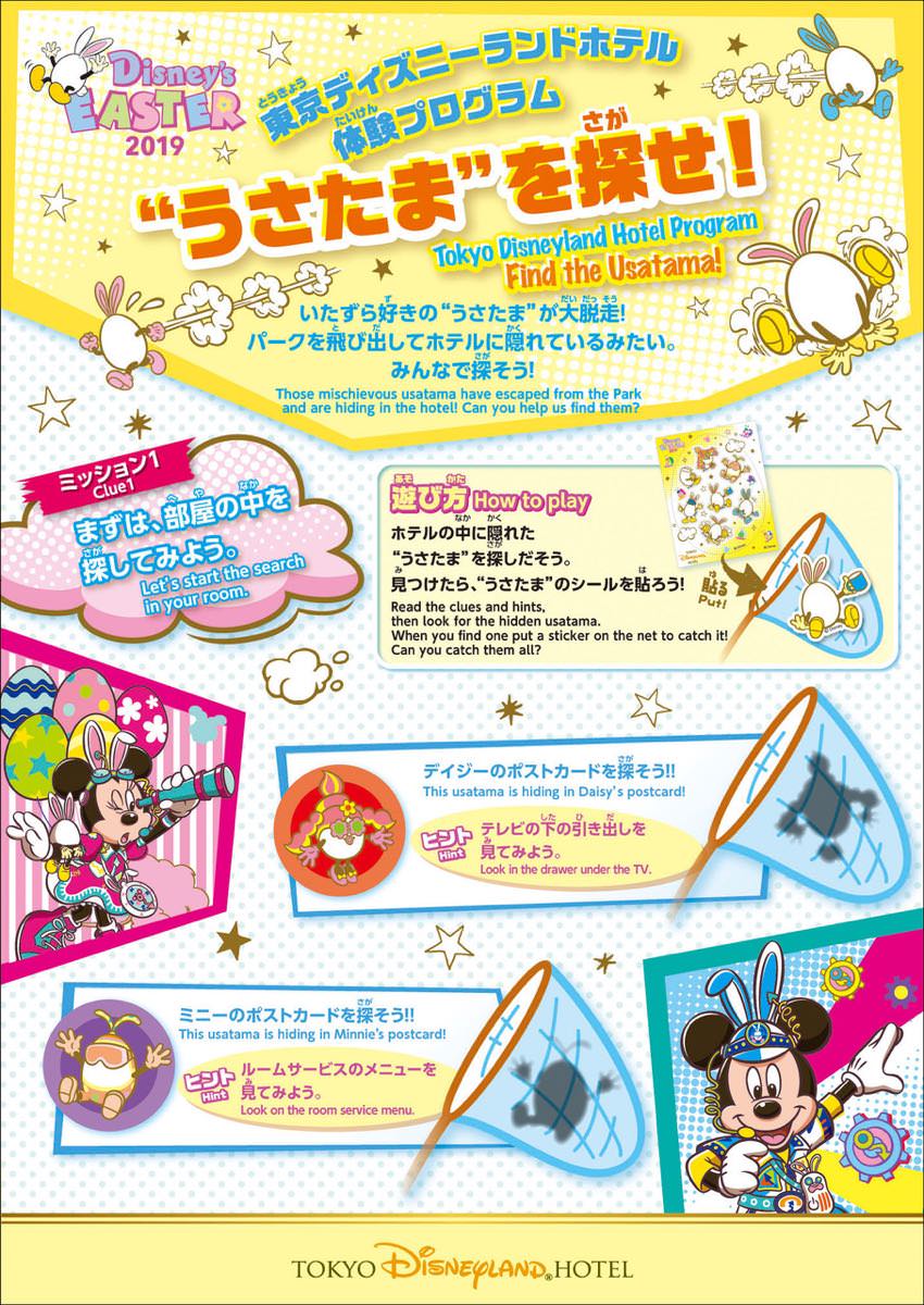 東京ディズニーランドホテルでは、東京ディズニーランド“ディズニー・イースター2019”のように“うさたま”を探す体験プログラム。