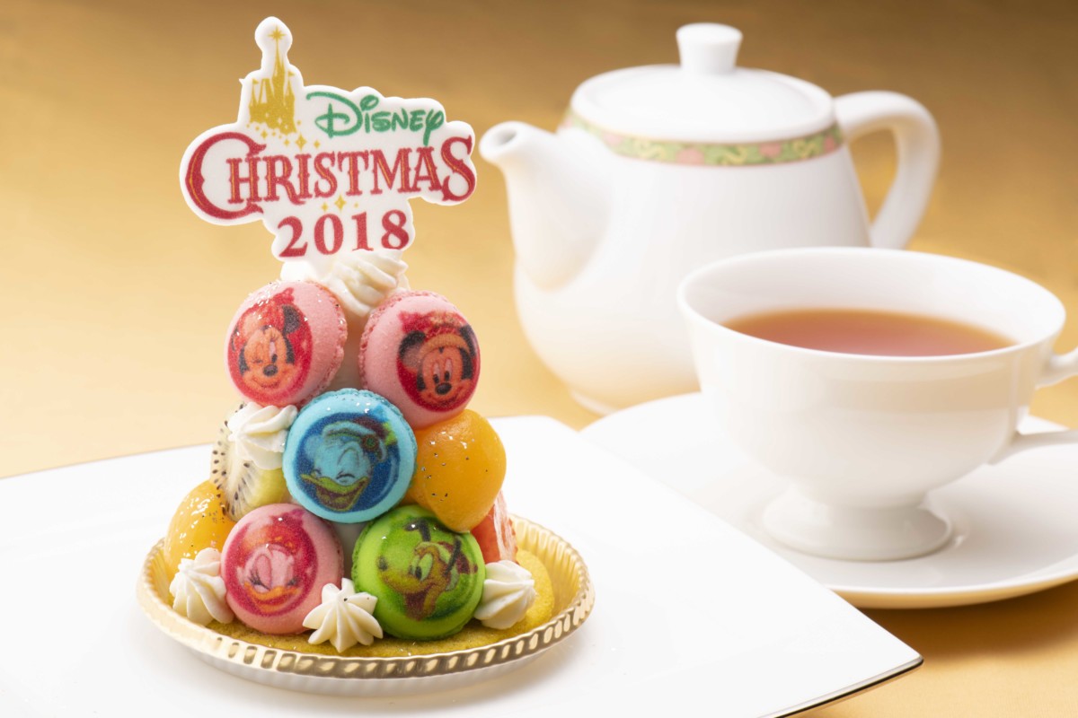 “ディズニー・クリスマス2018”の限定メニューは、マカロンがあしらわれたケーキセットが登場します。