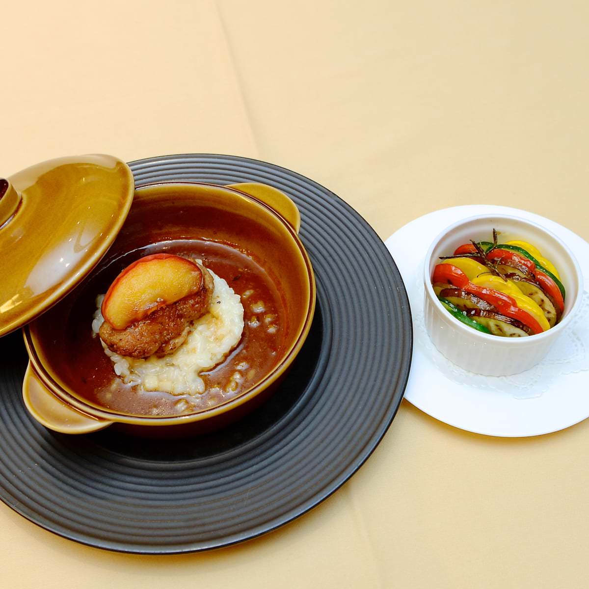 この他にも、「パイ生地で包んだトリュフと 鶏レバークネルのコンソメスープ ヴァン・ジョーヌ風味」と「ポワローのコンフィを纏ったカサゴのポワレ スパイス香るブイヤベース風ソース」が提供されます。