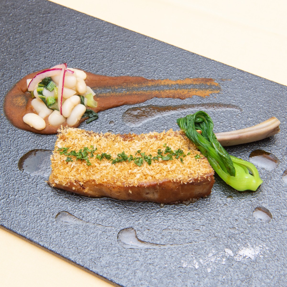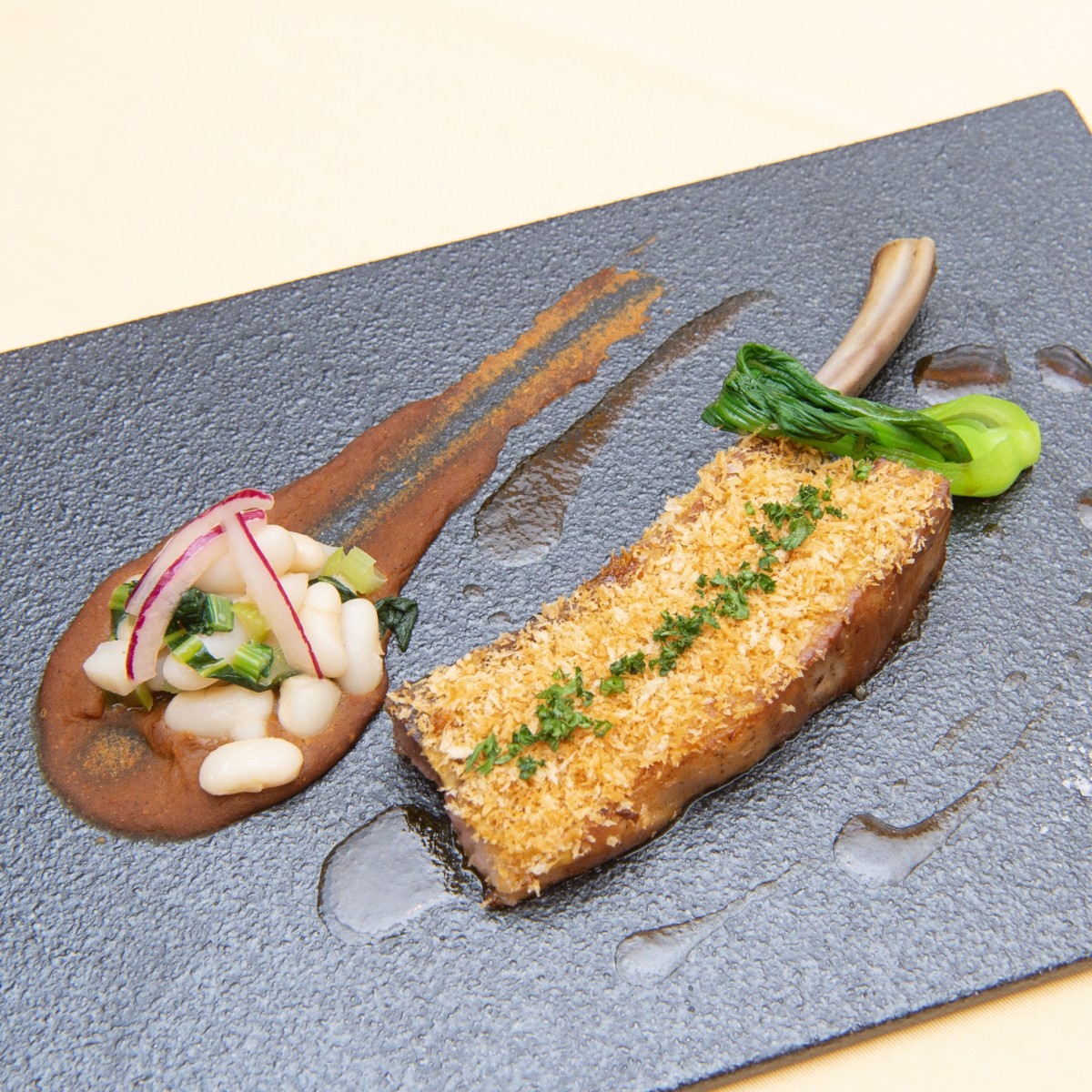 松阪ポークのスペアリブのコンフィ 白インゲン豆のサラダとともに