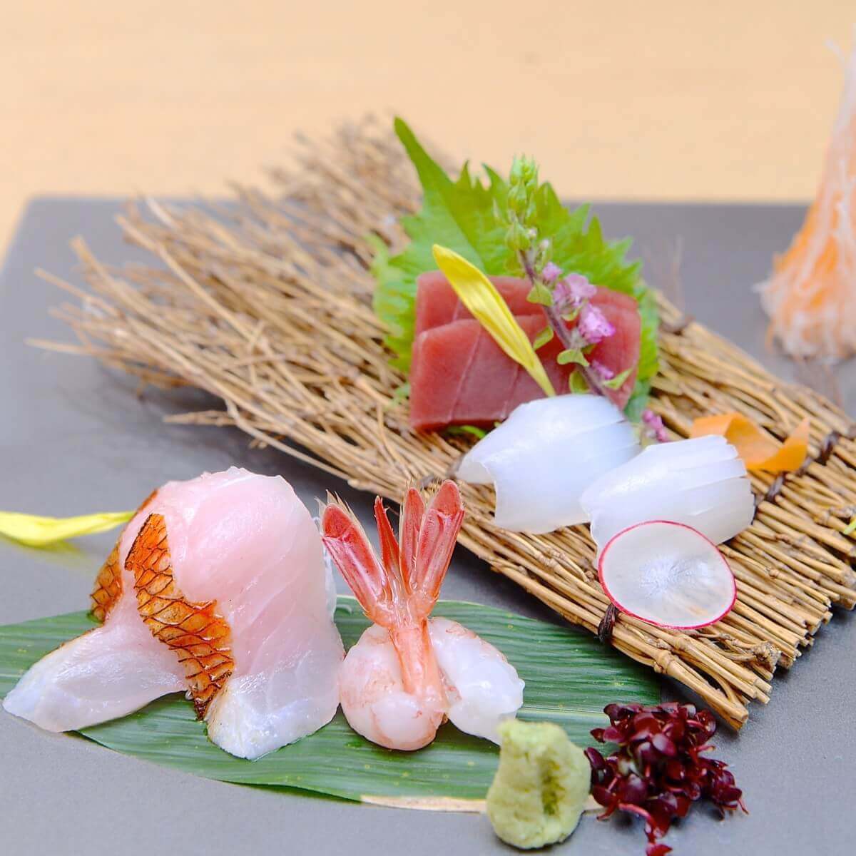 4種類のお造りを少しずついただけるのがうれしいですね!