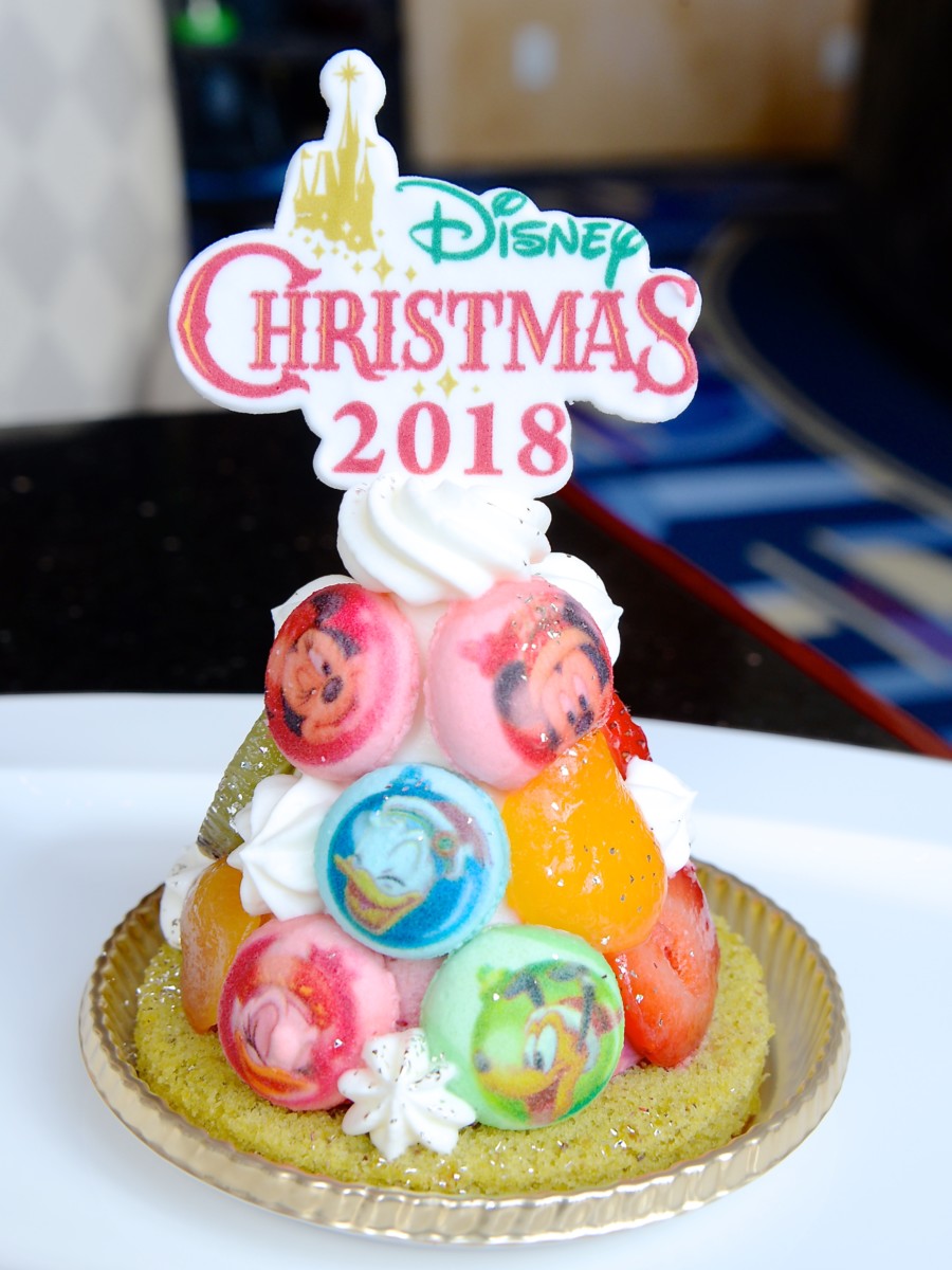 “ディズニー・クリスマス2018”の期間中に提供されるケーキは、クリスマスツリーをイメージしたカラフルで華やかな見た目となっています。