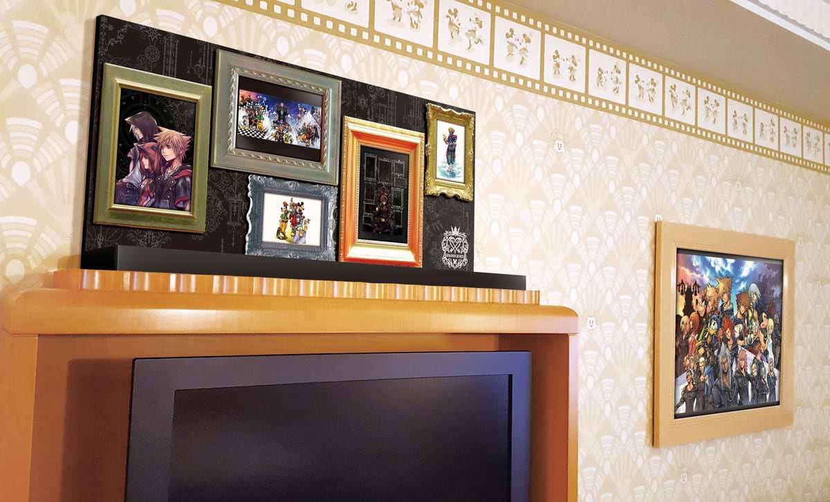 スペシャルルームには、「キングダム ハーツ」シリーズのアートを使用したデコレーションがさまざまな箇所に施された、シックなデザイン。