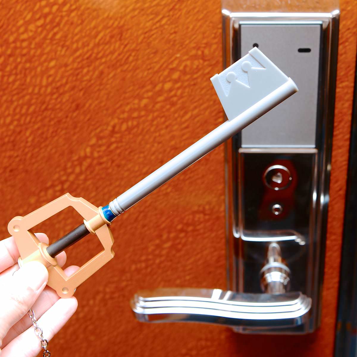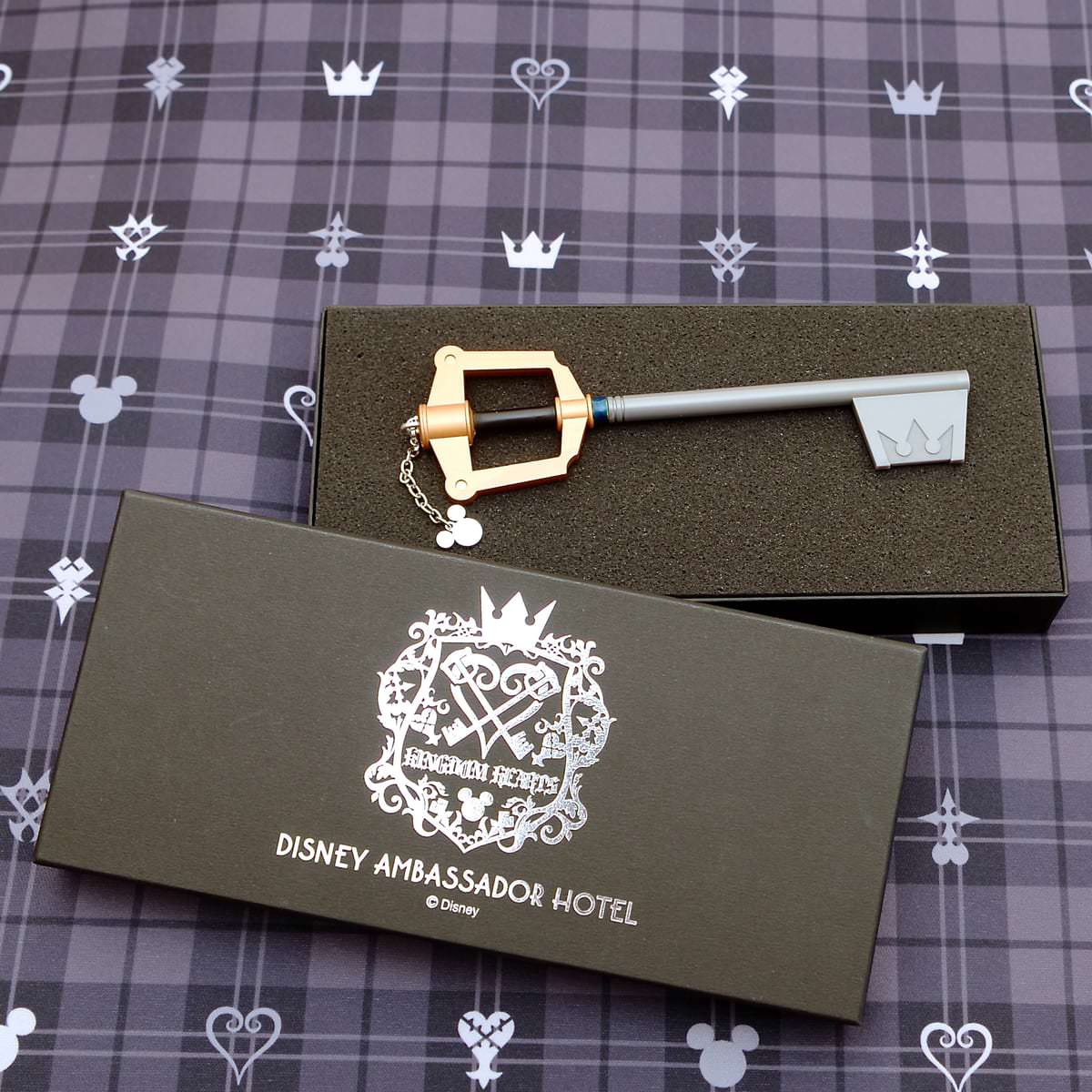 主人公ソラが最初に手にしたキーブレード“キングダムチェーン”をイメージした、重厚感のあるスペシャルルームキー(長さ約18cm/厚さ約1.1cm)。