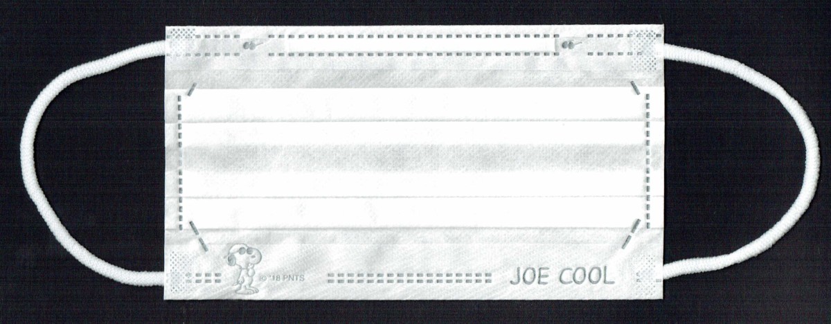 マスクのワンポイントは、もちろんJOE COOLデザインのスヌーピー!
