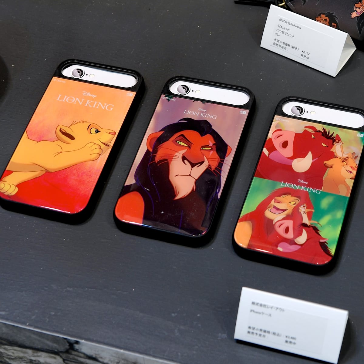 「シンバ」、「スカー」、「ティモン」、「プンバァ」がデザインされたiPhoneケース