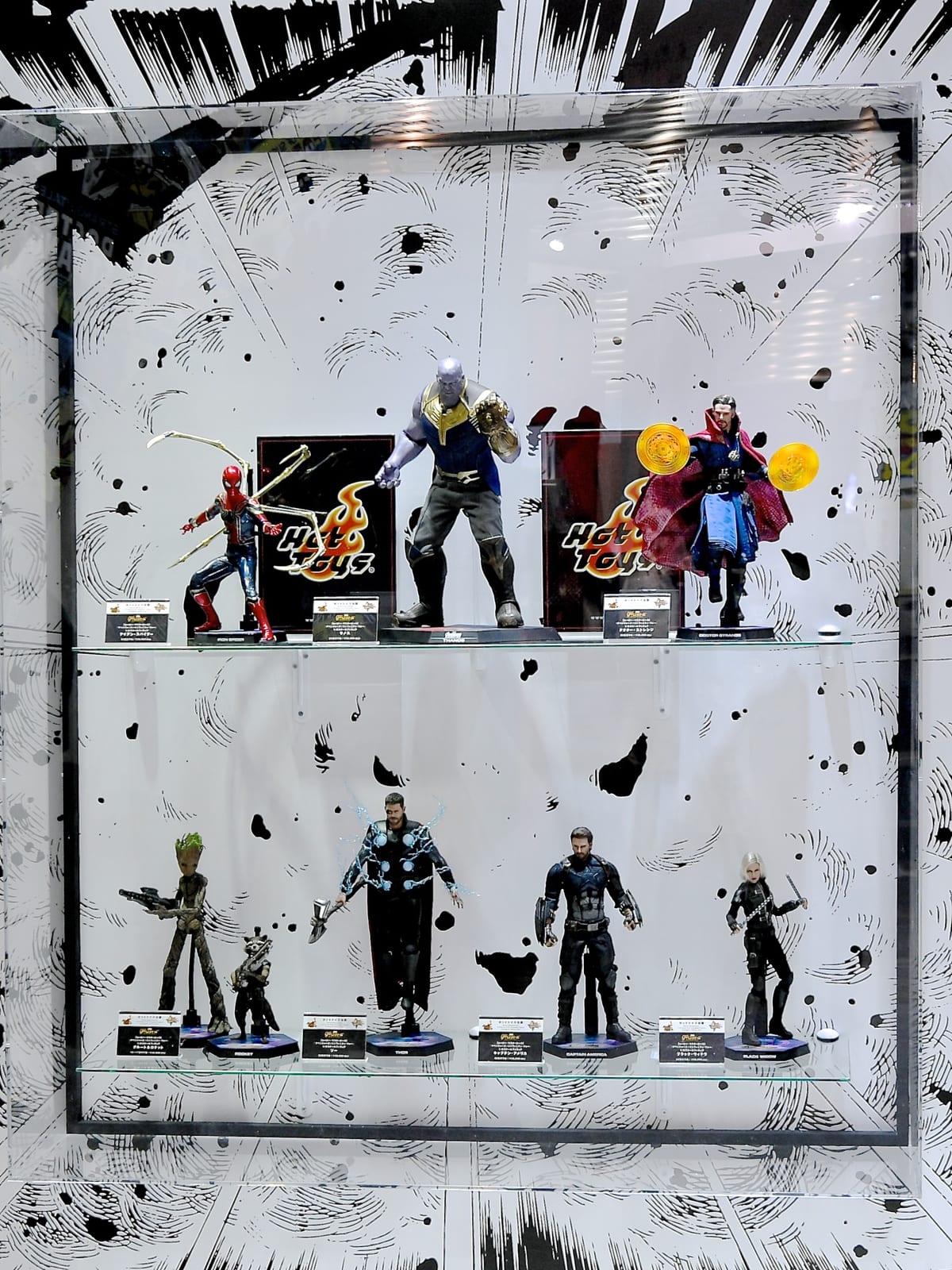 『アベンジャーズ/インフィニティ・ウォー』より「アイアン・スパイダー」、「サノス」、「ドクター・ストレンジ」、「グルート&ロケット」、「ソー」、「キャプテン・アメリカ」、「ブラック・ウィドウ」が展示されていました。
