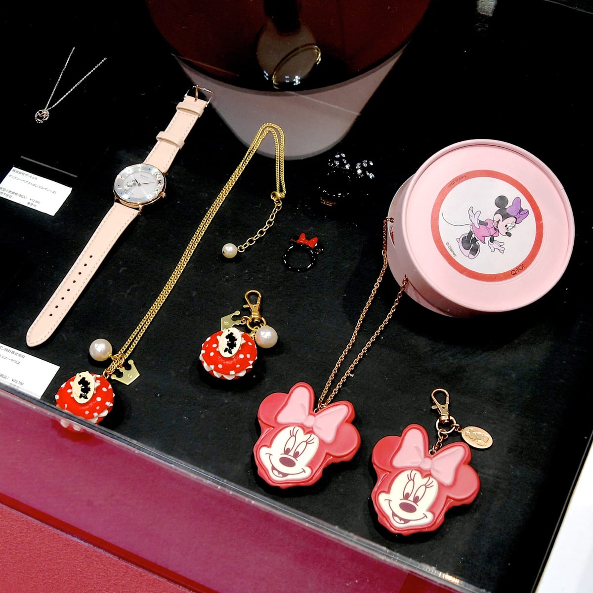 ピンクの可愛いスイーツモチーフアクセサリー!Q-pot. ディズニーデザイン「ミニーマウス/ストロベリーケーキ」