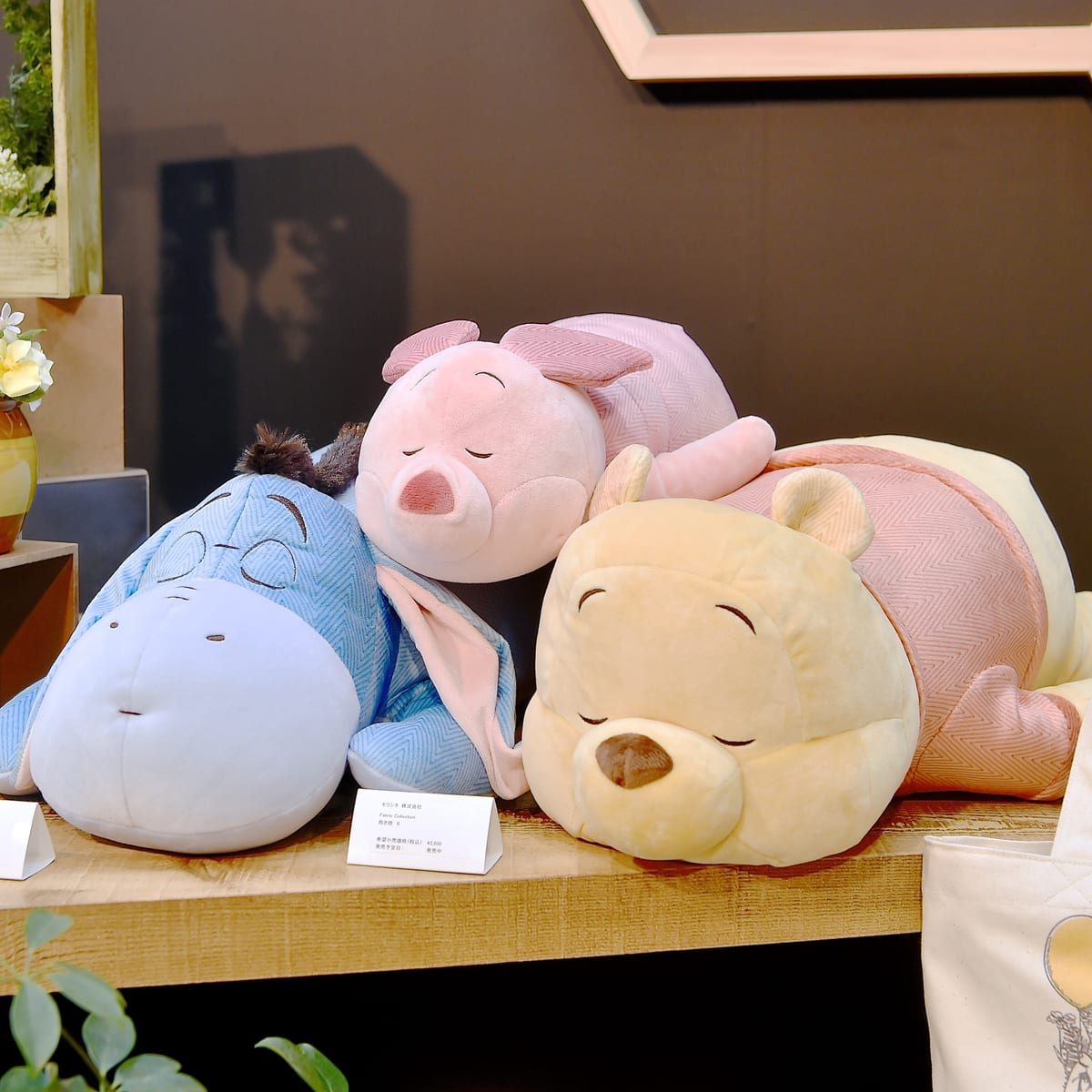モリシタの「くまのプーさん」ぬいぐるみはごろんとお眠りしているくまのプーさん、ピグレット、イーヨー。
