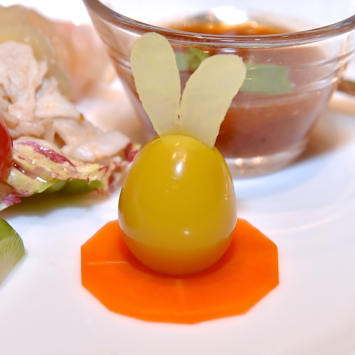 ウサギの耳つきのウズラの卵がちょこんと乗った、イースターらしい遊び心がポイントです☆