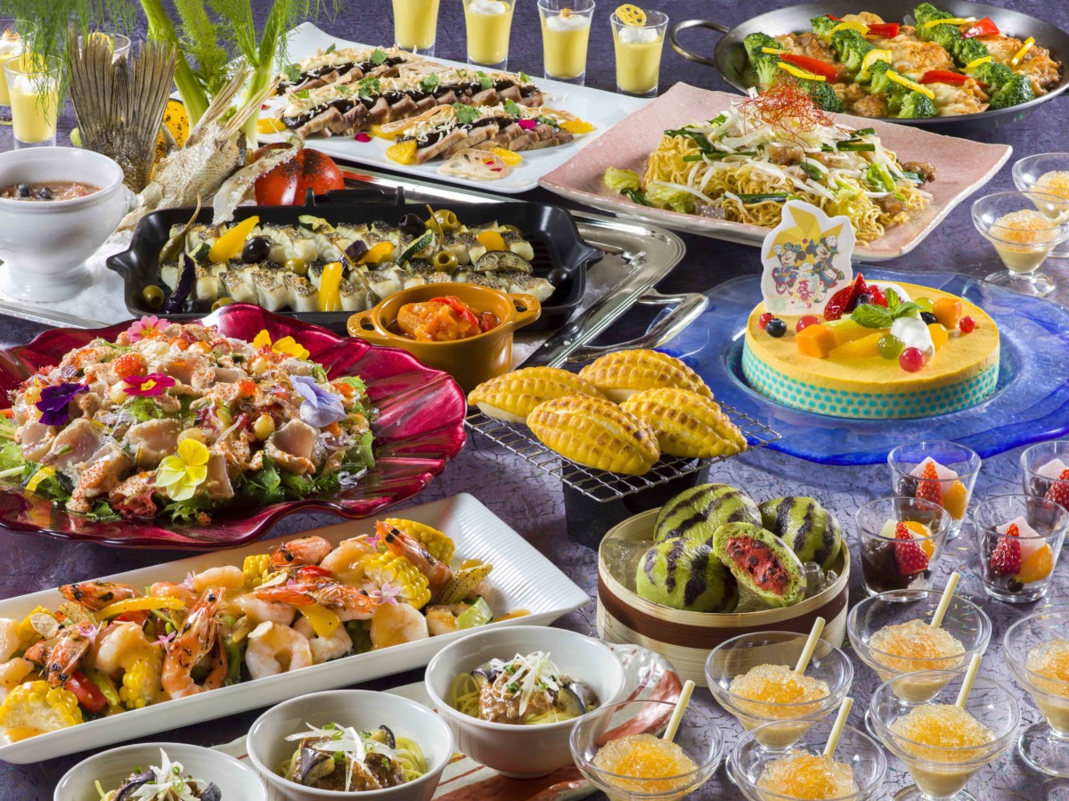 「ディズニー夏祭り」の限定メニューは、ランチとディナーの時間帯でブッフェが楽しめます♪