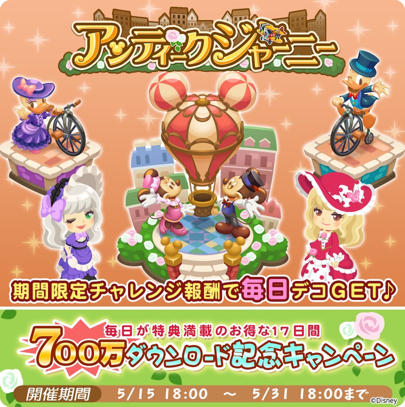 ゲームアプリ「ディズニー マジカルファーム」の期間限定イベント『アンティークジャーニー』は、5月31日(木)18:00までの期間限定で開催です!