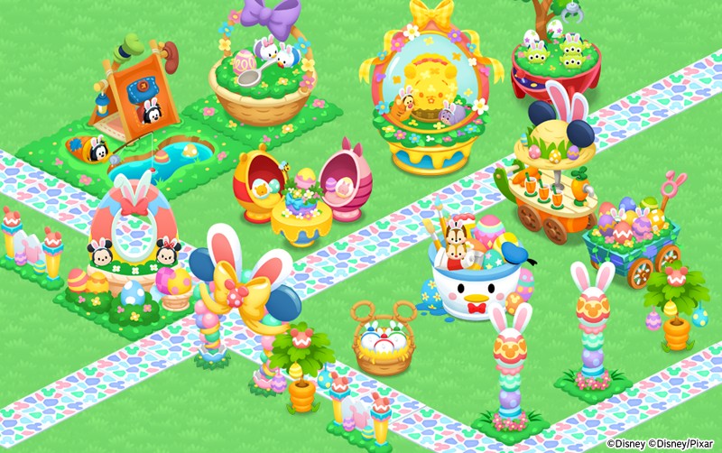 スマホアプリ「ディズニー マジカルファーム ~マジックキャッスルストーリー~」では、ツムツムとイースターをテーマにしたアイテムが多数登場する『ツムツムのわくわくエッグハント!』を開催中!
