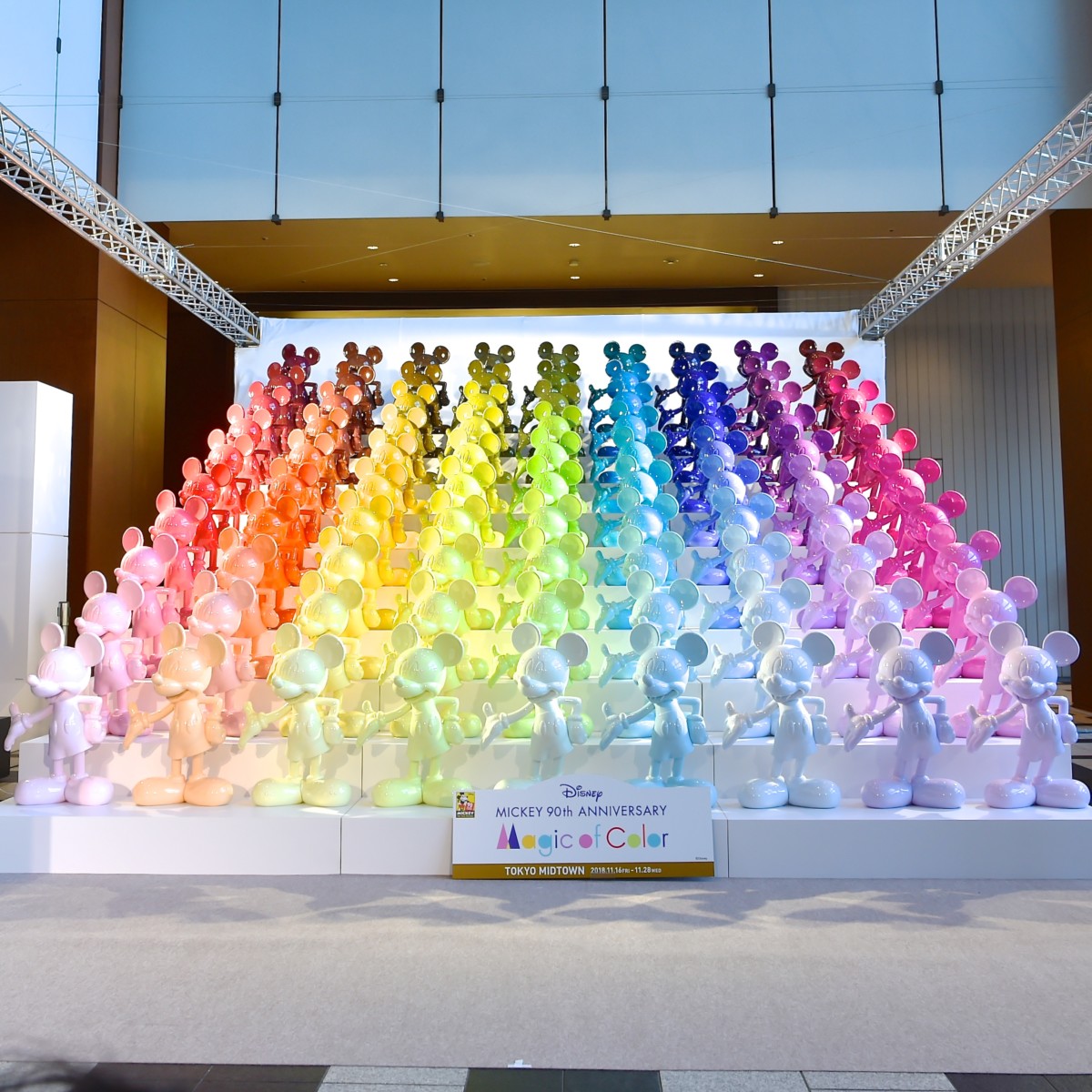 「ディズニー ミッキー90周年 マジック オブ カラー」は、2018年11月16日(金)から「東京ミッドタウン」、12月1日(土)から「三井ショッピングパーク ららぽーとTOKYO-BAY」、12月28日(金)から「三井ショッピングパーク ららぽーと横浜」と順次開催され、約1年をかけて関東、関西、中部地方の三大都市圏に展開予定。