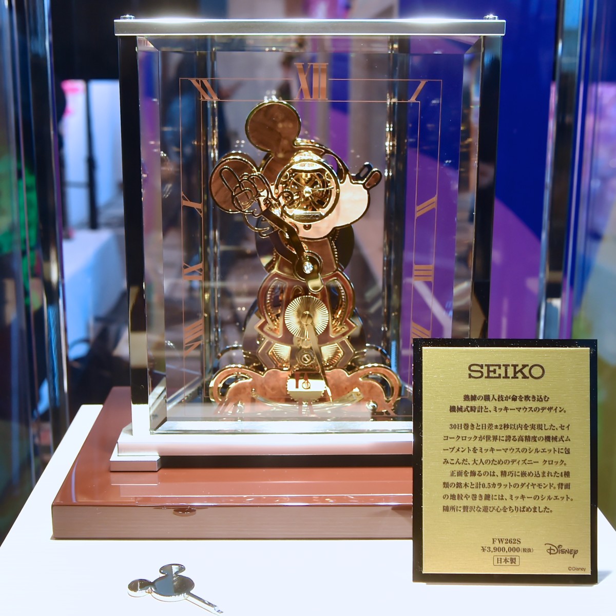ミッキーのシルエットが正確な時を刻む、高級木材が使用されたセイコークロックの「機械式置時計」