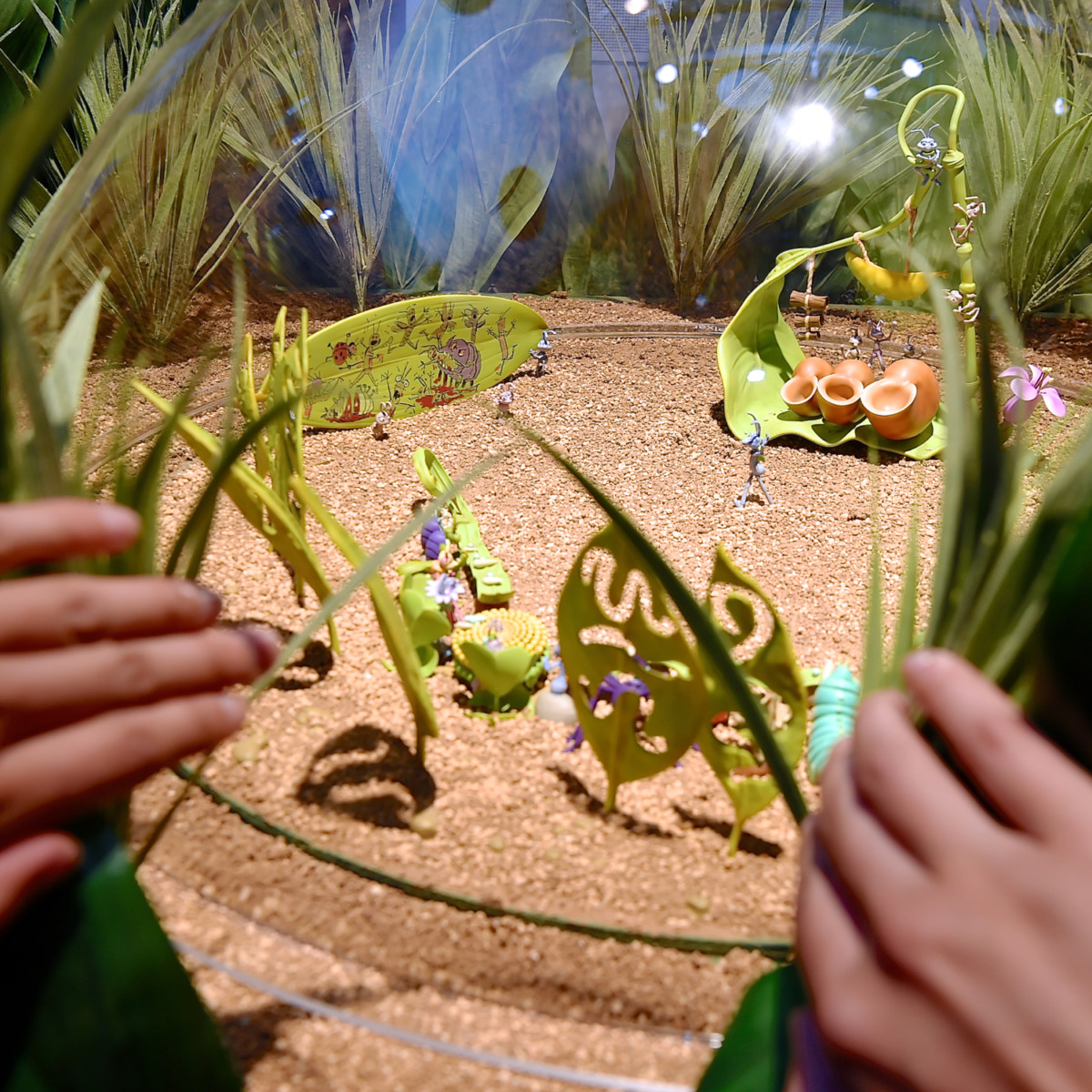 虫たちの小さな世界を再現したミニチュアのフォトスポット。
