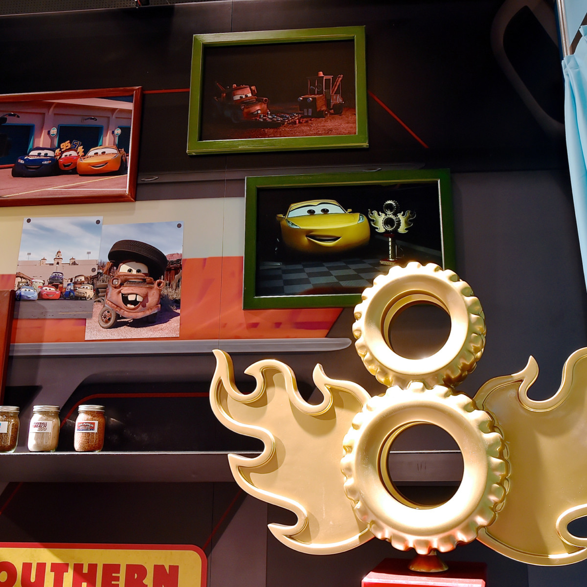 主人公の「ライトニング・マックィーン」、「クルーズ・ラミレス」、「マック」といった『カーズ/クロスロード』のシーンを中心にしたフォトスポットです。