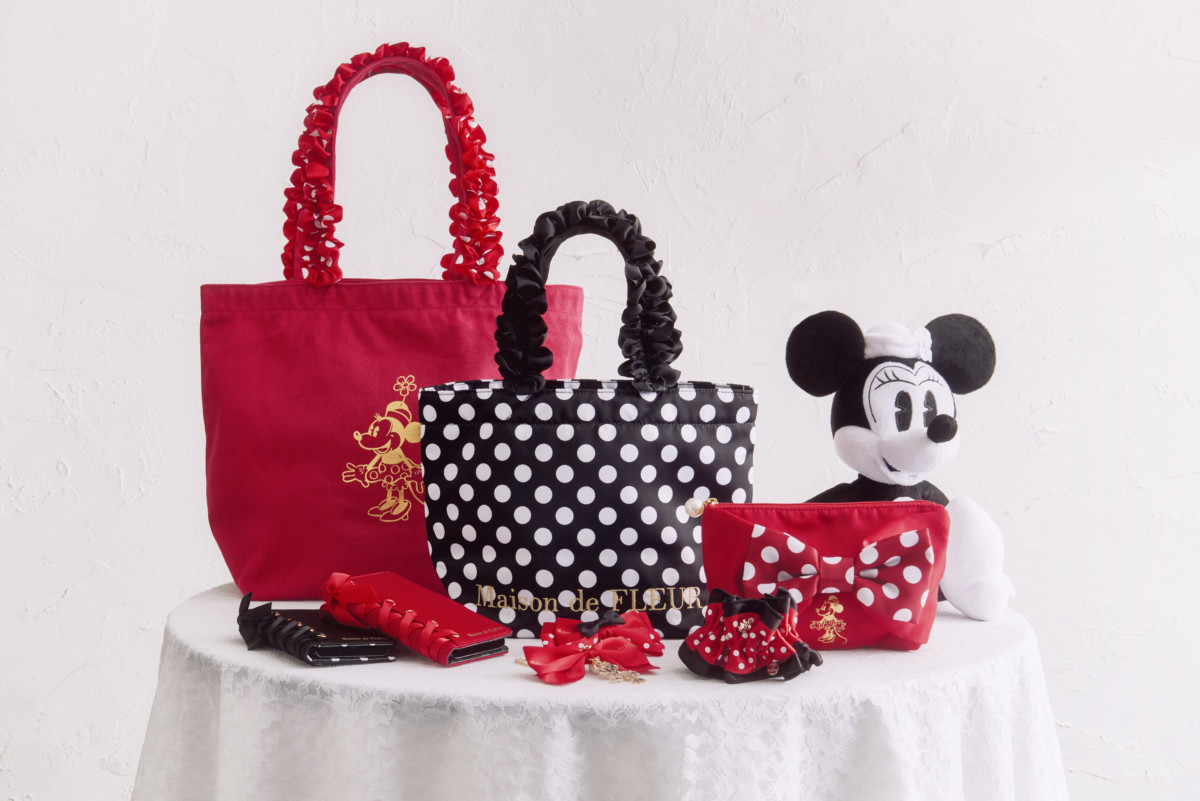 「MaisondeFLEUR」との初の共同企画アイテムの他にも、ドット柄が大胆にあしらわれたアイテムや、様々な表情のミニーが描かれたアイテムも登場。