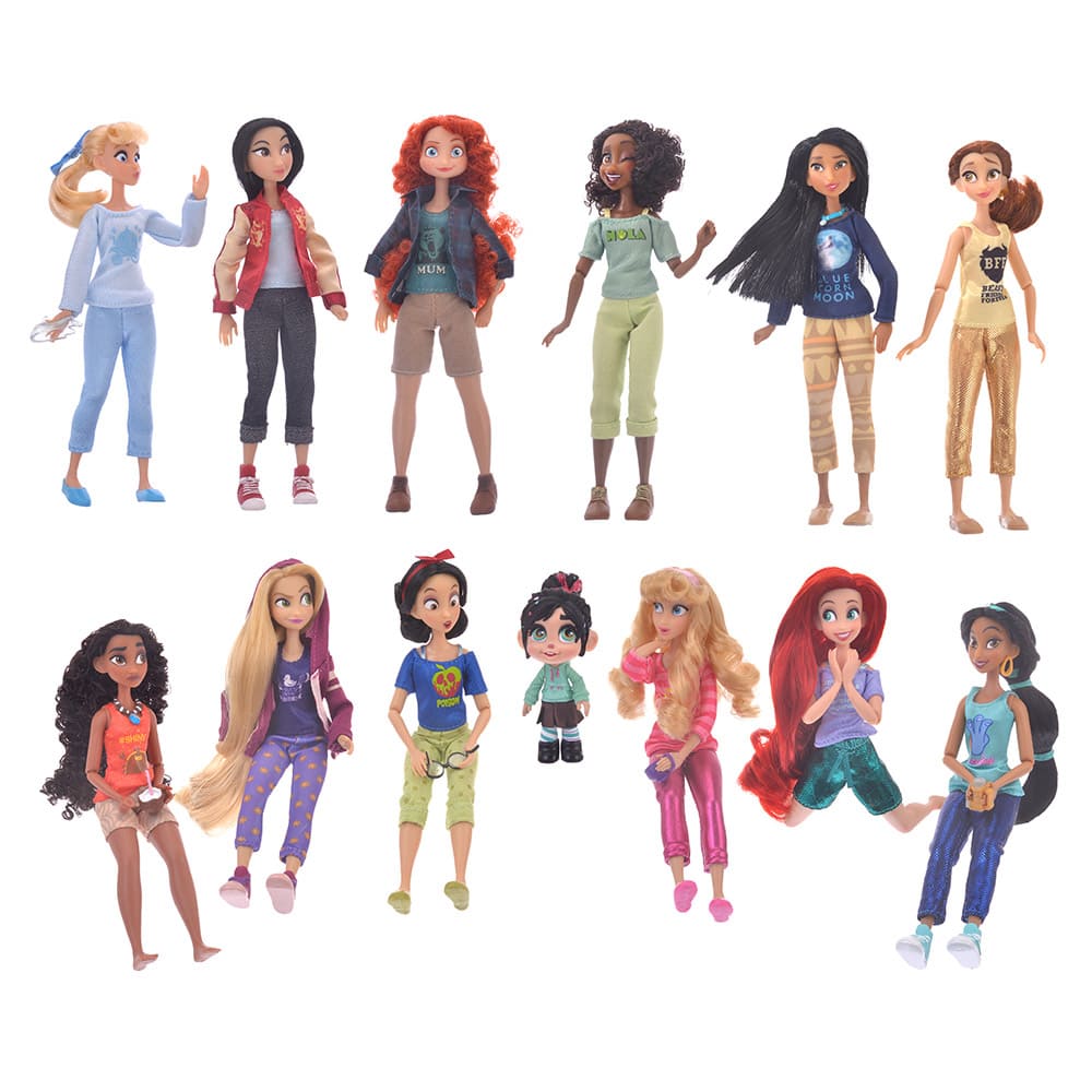 主人公のヴァネロペを囲むように、ディズニーとピクサーの両アニメーションスタジオのプリンセスたちやモアナが一堂に会した、スペシャルなドールセット。