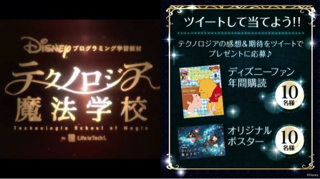 月刊「ディズニーファン」の年間購読や、「テクノロジア魔法学校」のオリジナルポスターが当たるキャンペーン。