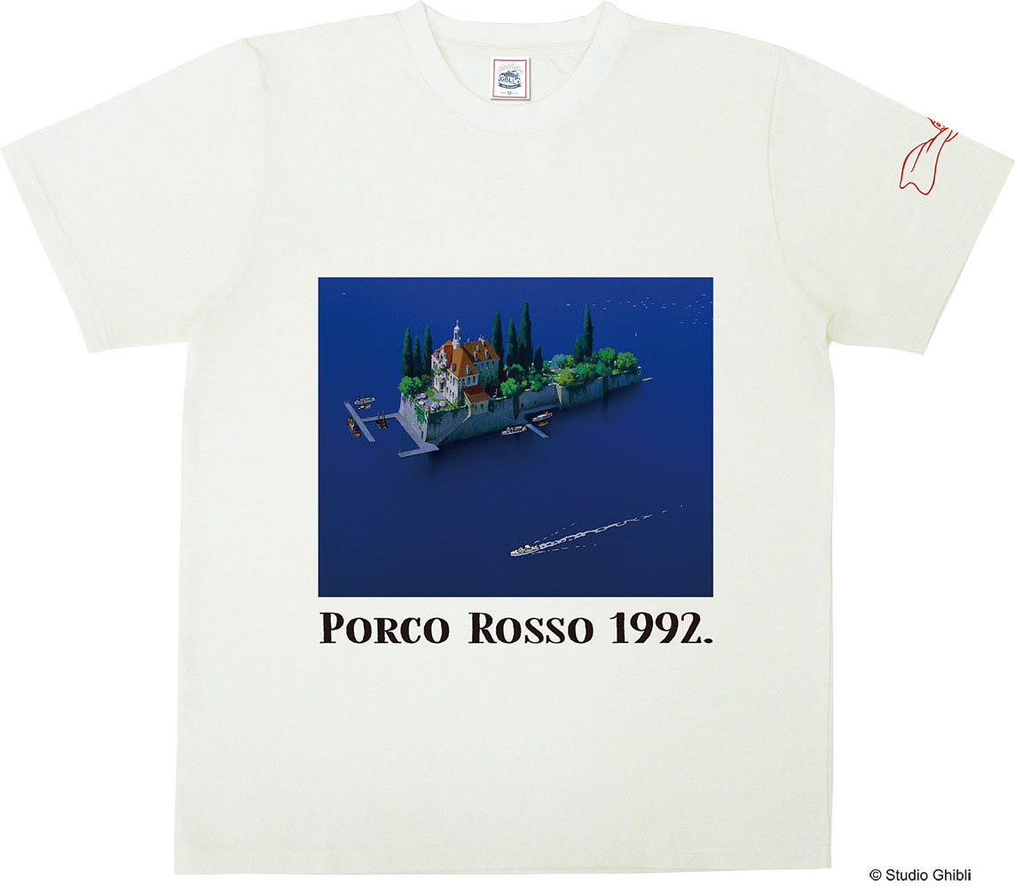 映画『紅の豚』に登場する「ホテルアドリアーノ」がデザインされたTシャツ。