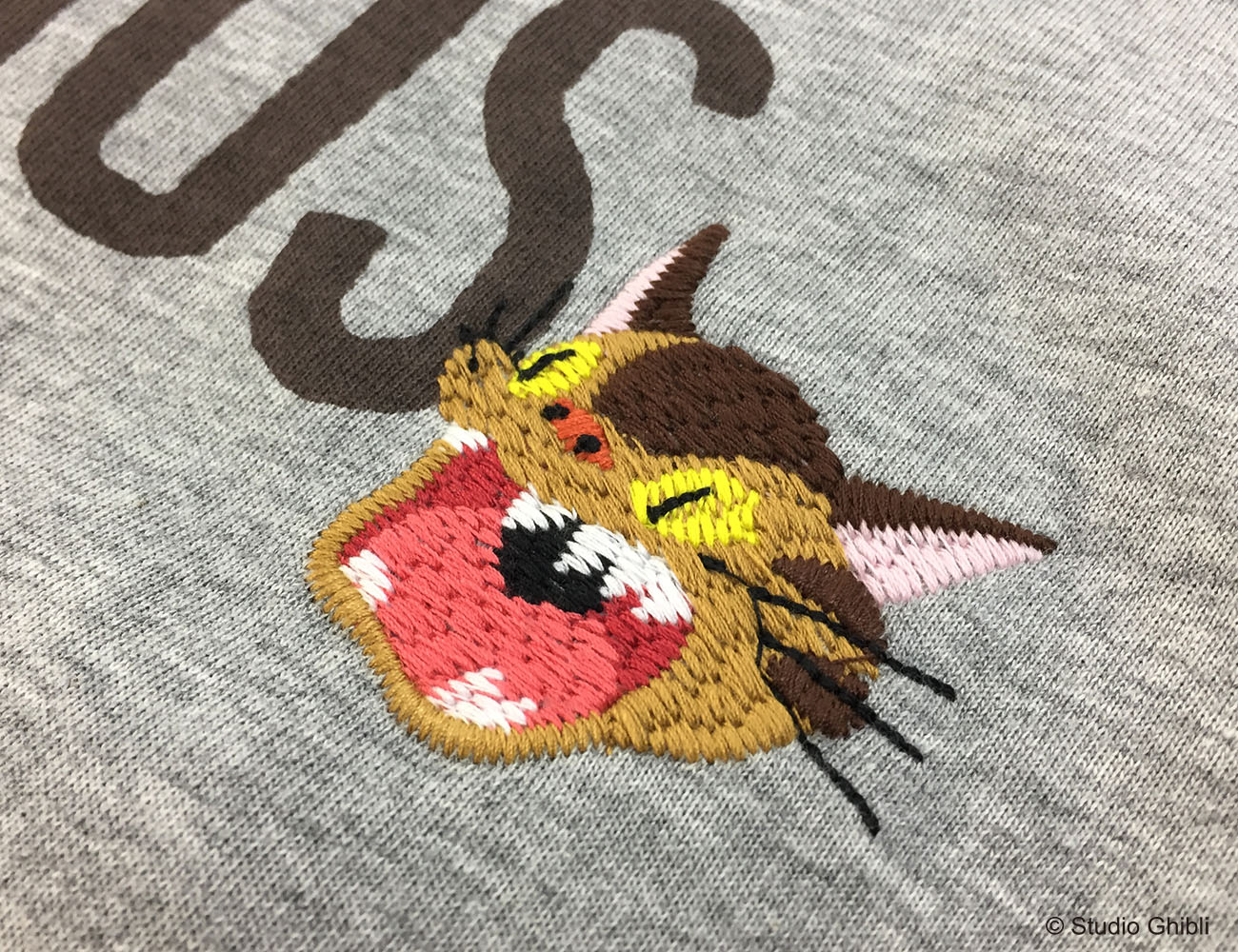「ネコバス」の大きく口を開いた顔は、刺繍になっています。