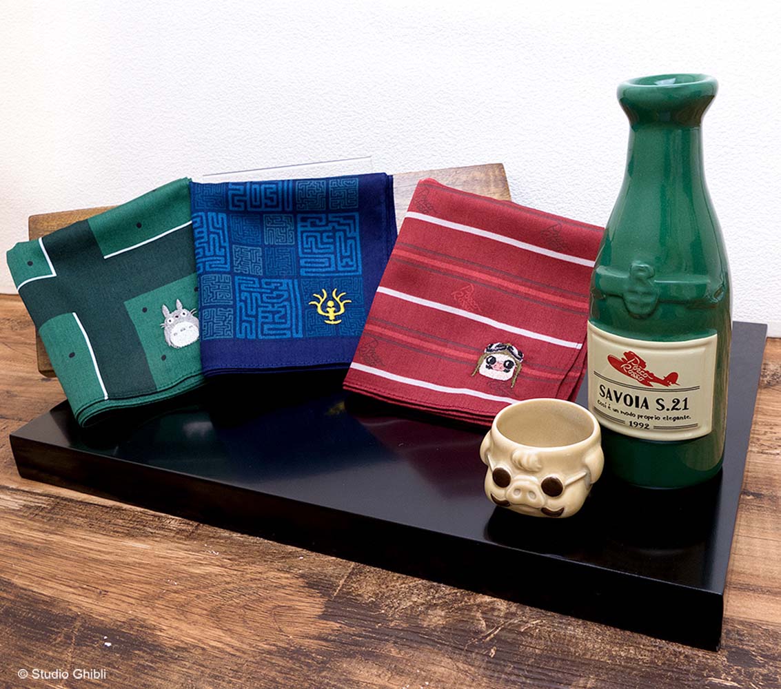 「紅の豚 徳利おちょこセット ポルコで乾杯」と「スマートハンカチ 全3柄」は、全国のどんぐり共和国とオンラインショップ そらのうえ店で、2018年5月下旬に発売です☆