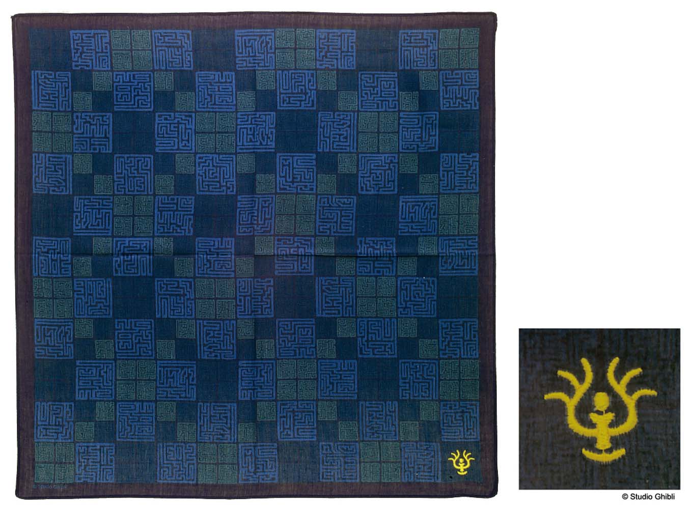 右下に「飛行石」のマークが刺しゅうされたハンカチ。