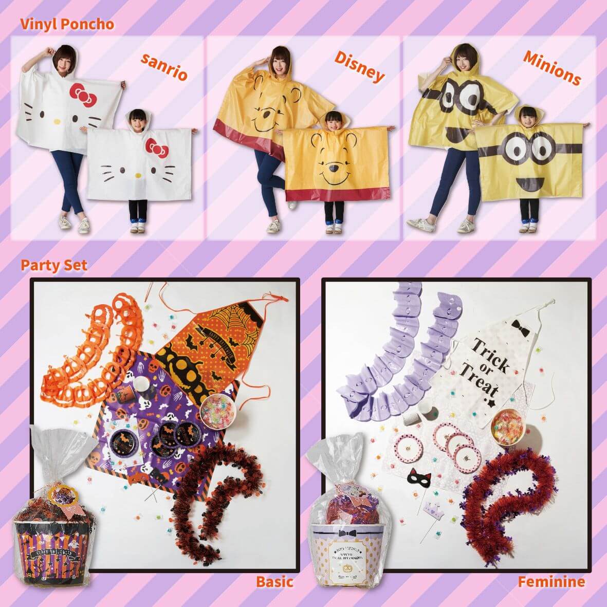 プーさん・キティ・ミニオンとハロウィーン!ドウシシャ「ルンルンポンチョ&パーティーセット」