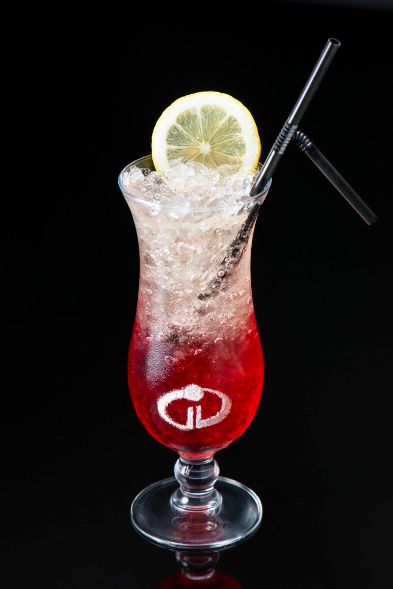 粉砂糖であしらったマークがポイントの赤いスペシャルドリンクは、クランベリーのジュースとシロップをベースに、ジンジャエールと合わせた一杯。