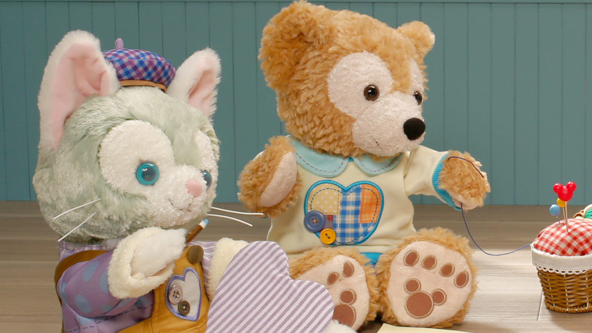 ブランケット作りに挑戦するダッフィーとジェラトーニ、