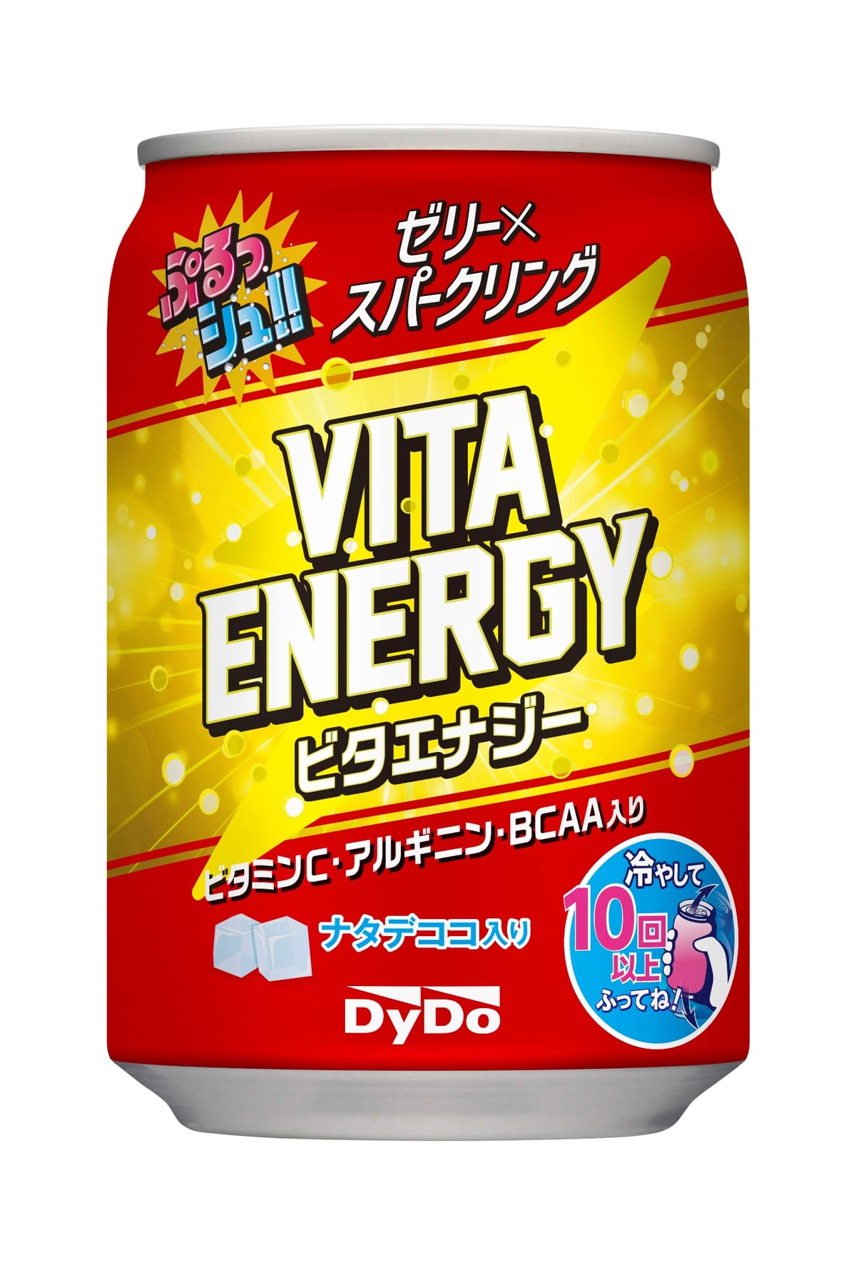 「ぷるっシュ!!ゼリー×スパークリング ビタエナジー」は、ビタミンC、アミノ酸などの、疲れたカラダに嬉しい成分が配合された炭酸ゼリーのドリンクです。