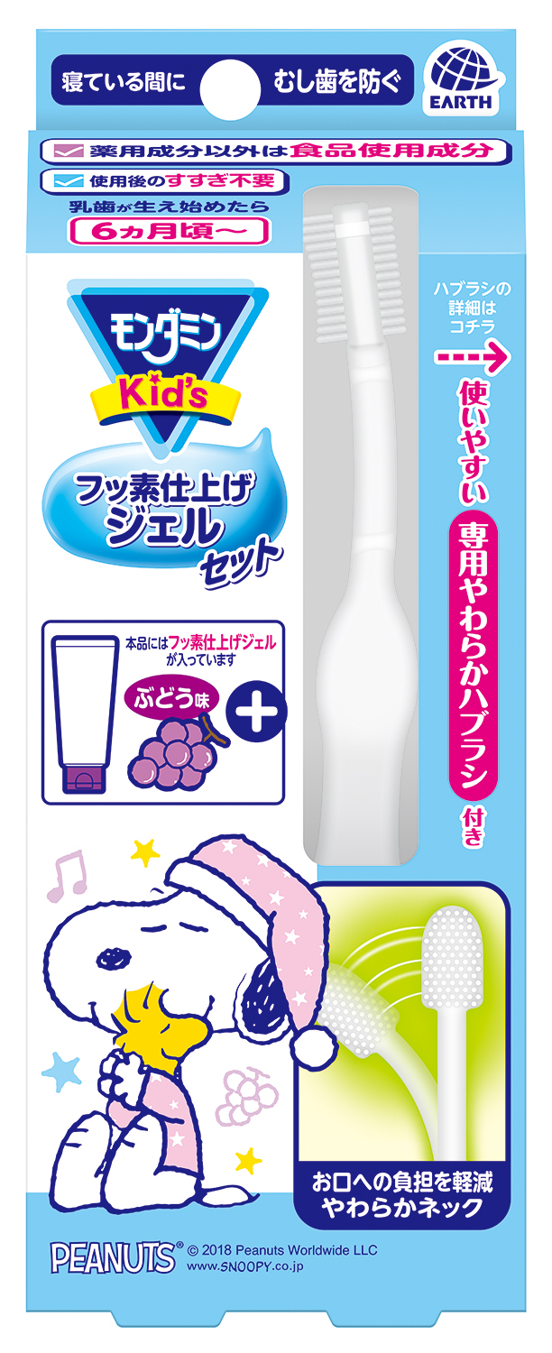 スヌーピーデザインで楽しく歯みがき!アース製薬「モンダミンKid’s フッ素仕上げジェルセット ぶどう味」
