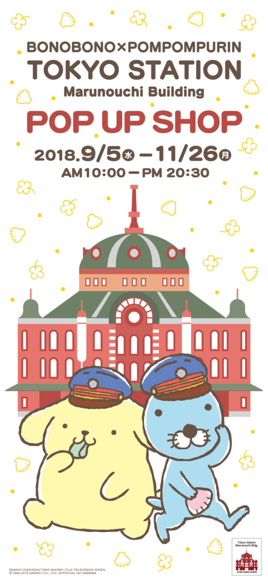 「ぼのぼの×ポムポムプリン」のPOP UP SHOPが2018年9月5日(水)から11月26日(月)までの期間限定で東京駅一番街に登場します☆