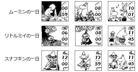 表示されるグラフィックスはモードを切り替えることで「ムーミン」や「リトルミイ」「スナフキン」それぞれの一日を楽しめるようになっています。