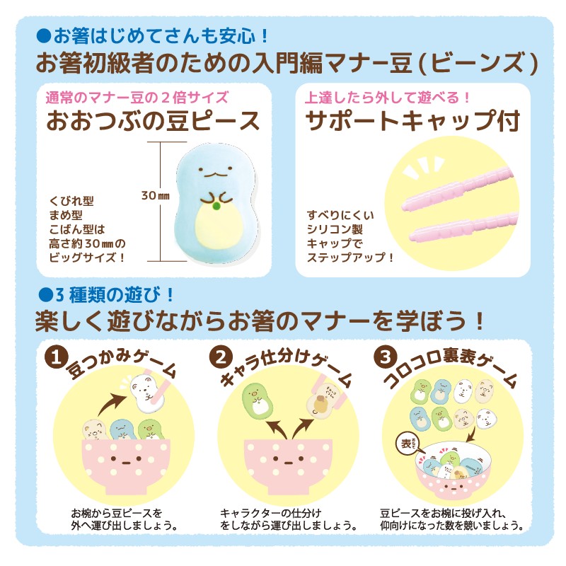 カワイイすみっコ豆(ビーンズ)で、楽しく遊びながら、お箸のマナーが学べます☆