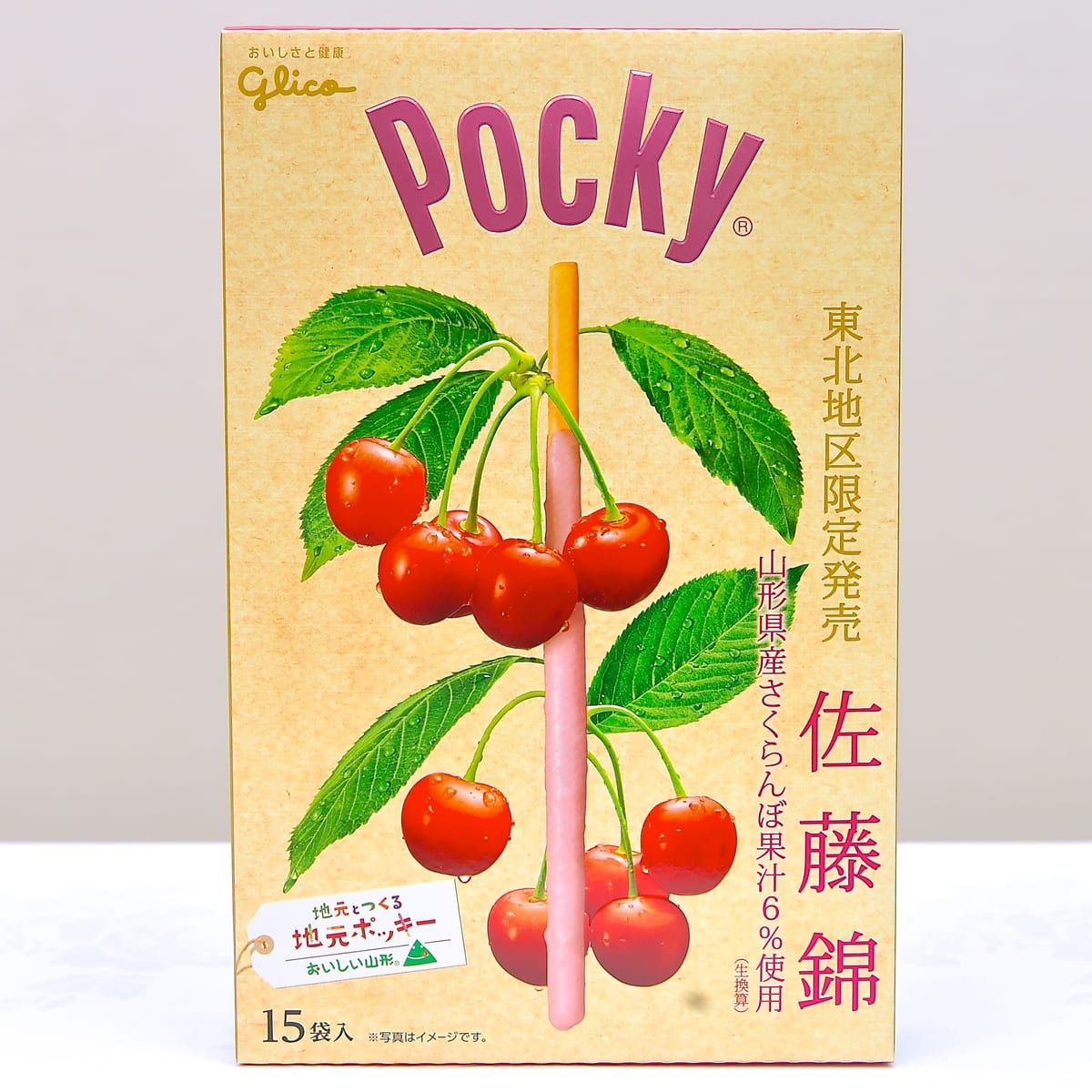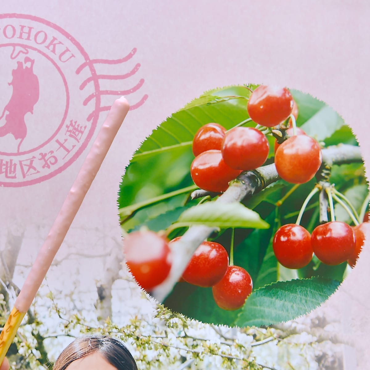 「果樹園の宝石」と呼ばれる、佐藤錦の果汁を使っているポッキー。