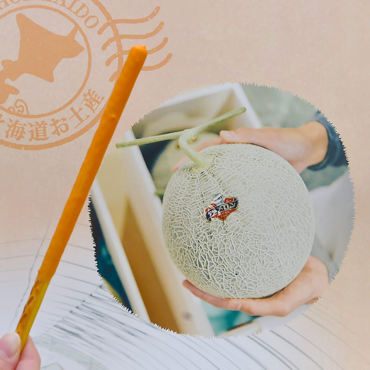 夕張メロン果汁が生換算で26%入っている贅沢なポッキー。