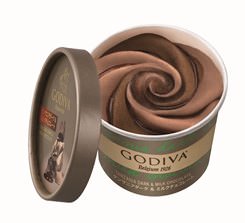「ゴディバ」ならではのタンザニアダークチョコレートアイスとミルクチョコレートアイス、更にコクのあるチョコレートソースを加えた、まろやかな口どけが特徴。
