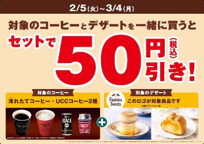さらに、2019年2月5日(火)から3月4日(月)の4週間で、対象のコーヒーと対象のデザートのセット購入で50円引きのセールを実施!