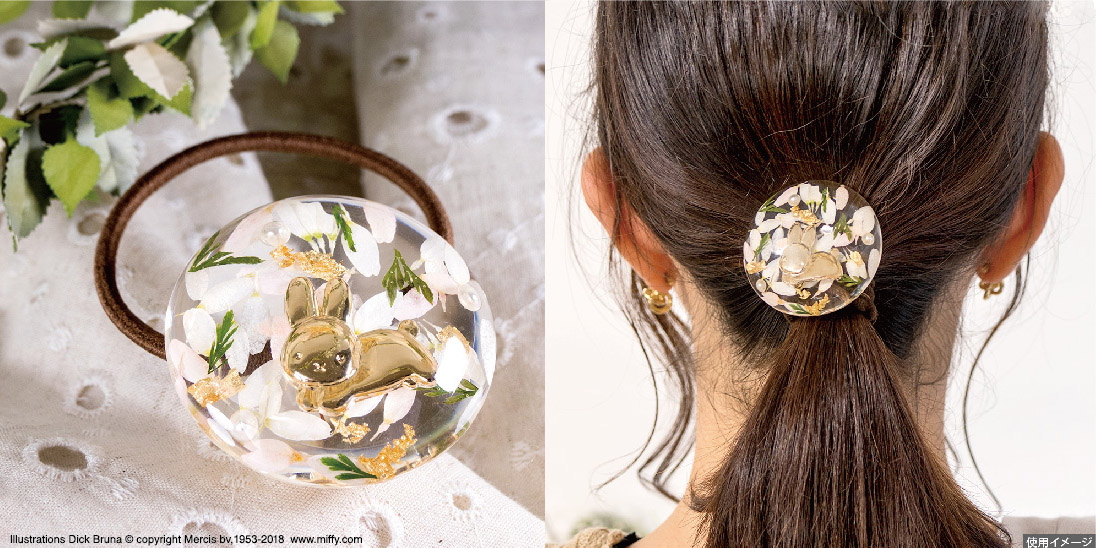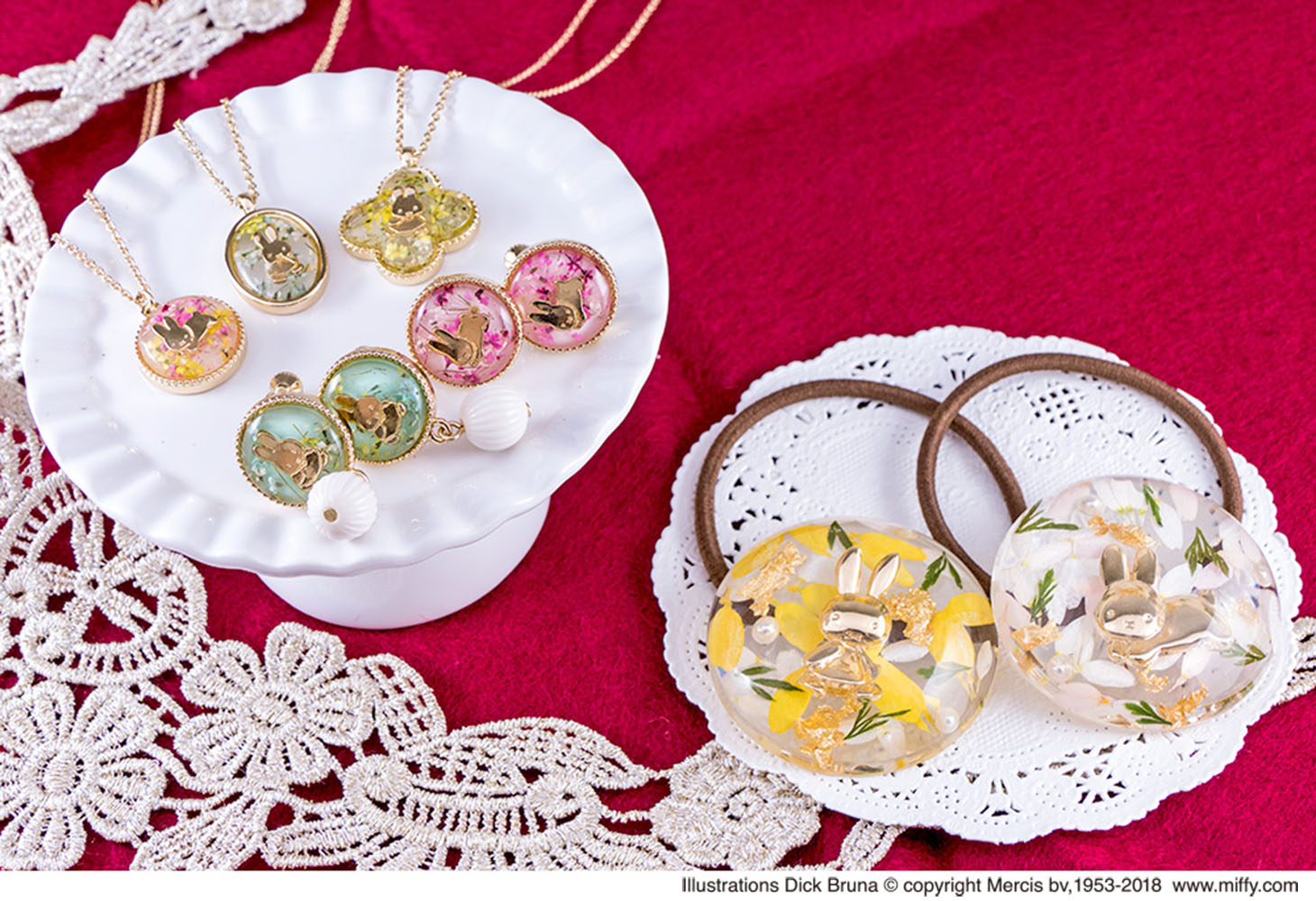 オランダの人気絵本シリーズ「ミッフィー」のお花屋さん「フラワーミッフィー」から、ドライフラワーを封入したミッフィーやこうさぎのモチーフの「ボタニカルアクセサリーシリーズ」が登場!