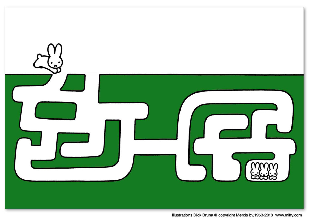 こうさぎ花瓶はディック・ブルーナの絵本の中で日本未発売の『whose hat is that?』の絵本の迷路のイラストをデザインのベースにしたフラワーミッフィーオリジナル商品。