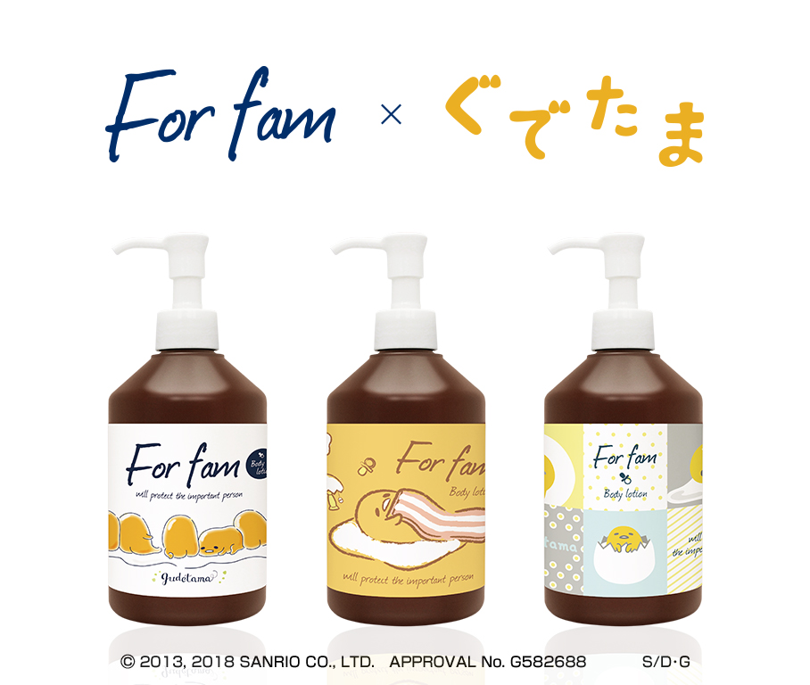 家族全員で使えるスキンケアブランド「For fam(フォーファム)」から、サンリオの人気キャラクター「ぐでたま」とコラボレーションしたアイテムが登場!
