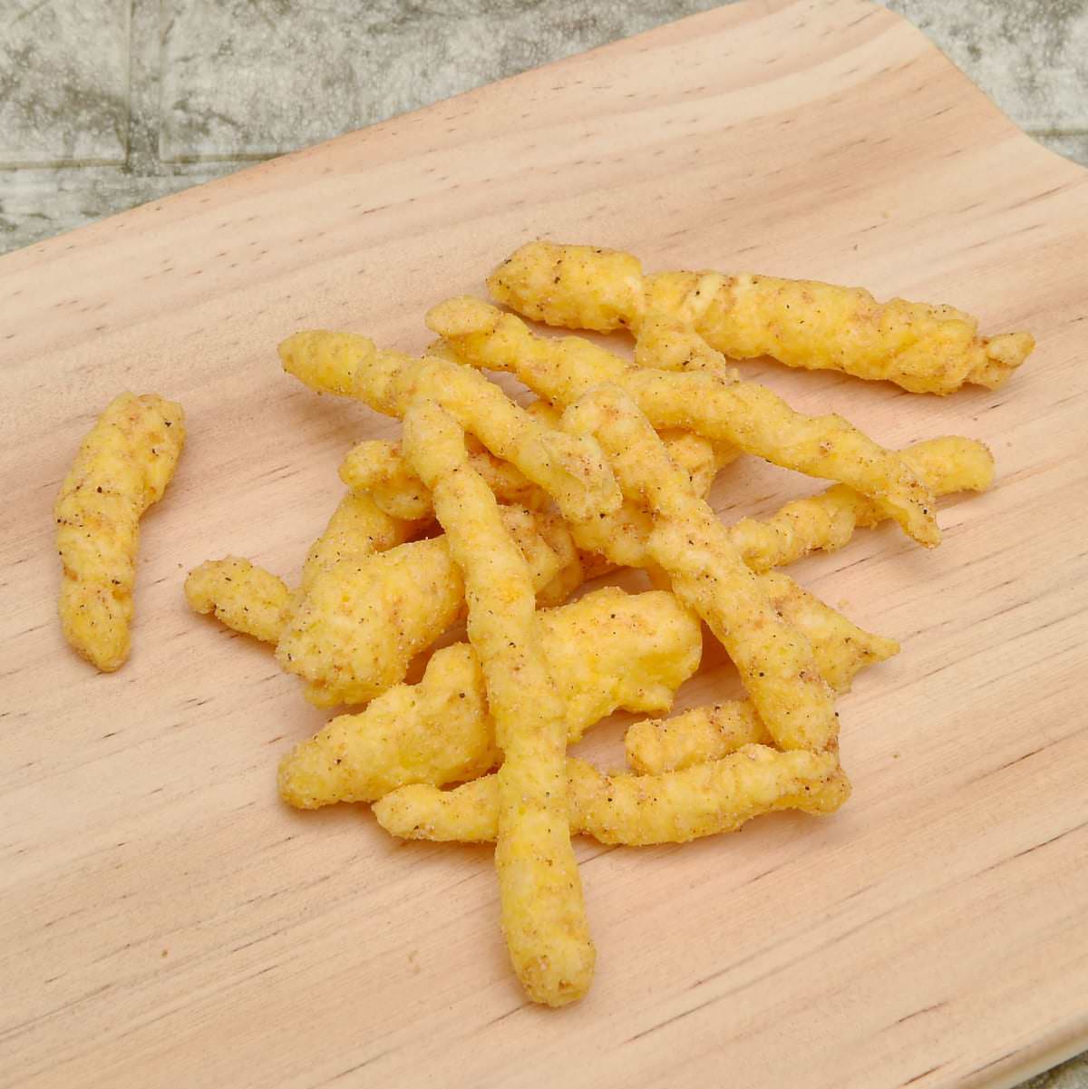 旨みをギュギュッと詰め込んだビーフハンバーグの味わいを、サクッと軽いコーンスナックで味わうことができます。