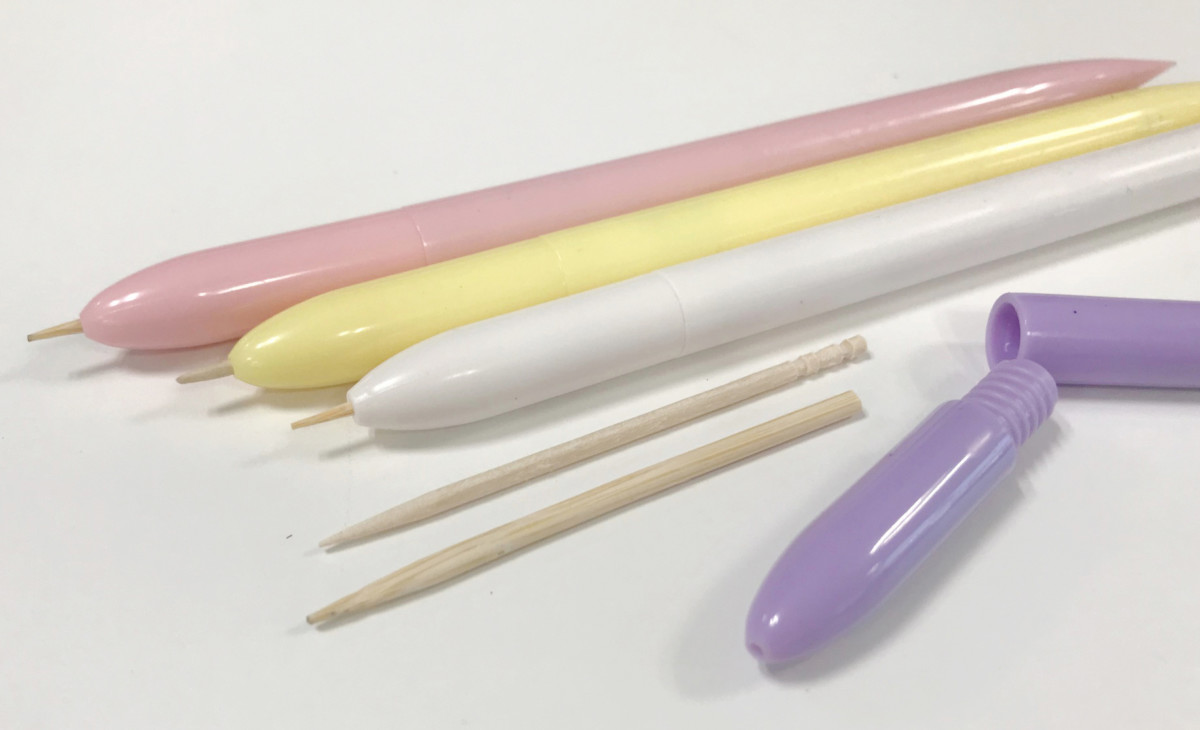 竹串やようじをペン先にセットできるので、何度でも繰り返し使えるオリジナル2WAYペン。