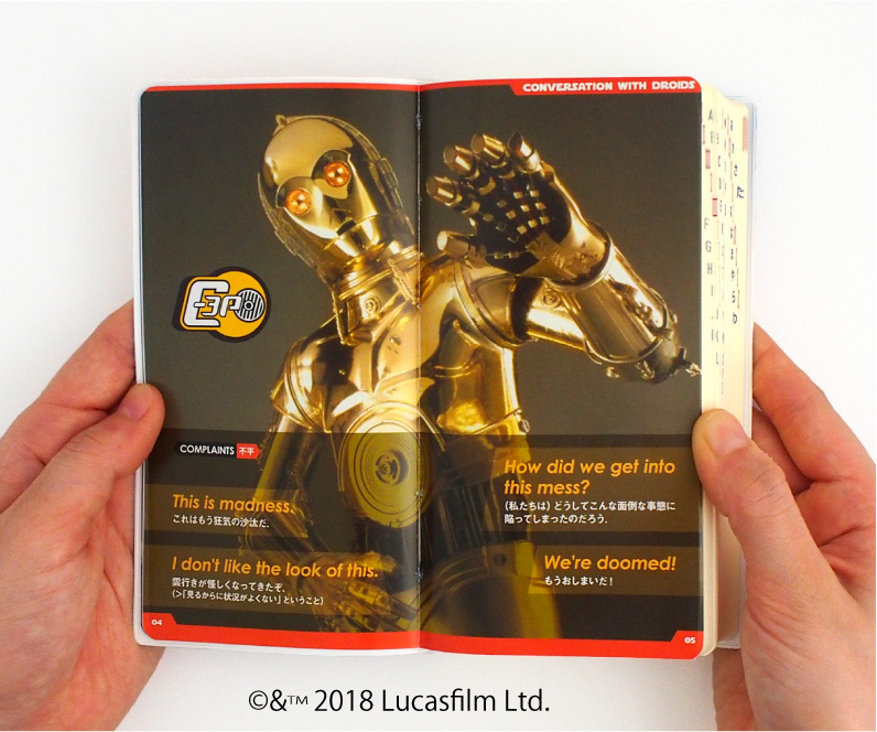 「ドロイド版」の「ドロイドの英会話」では「C-3PO」のセリフや「R2-D2」「BB-8」にまつわる会話表現が、大きな写真とともに紹介されています。
