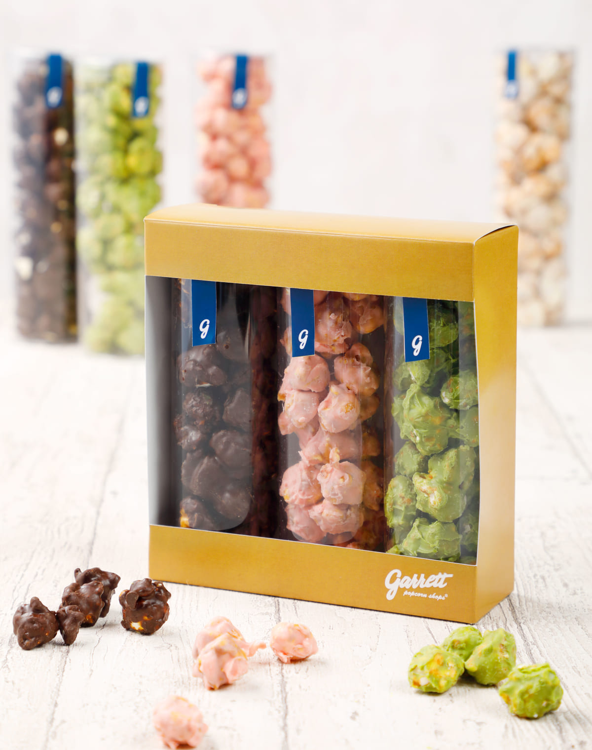 アメリカ・シカゴ生まれの老舗グルメポップコーン・ブランド「ギャレット ポップコーン ショップス®」から、限定フレーバー3種をコンパクトなスリムボトルに詰めこんだギフトBOX「Garrett BAR アソートBOX」が登場!